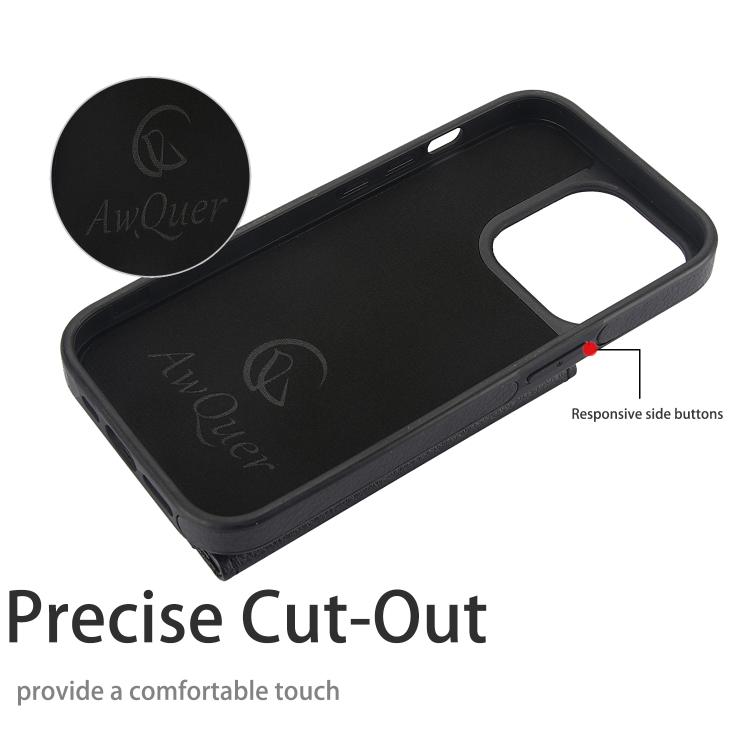 Funda para iPhone 12 Pro Max Awquer Cuero con Tapa Horizontal para Tarjetas y Soporte (Negro)