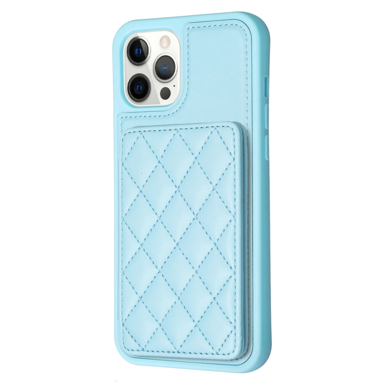 For iPhone 12 Pro Max BF25 Square Plaid Card Bag Holder Phone Case(Blue)