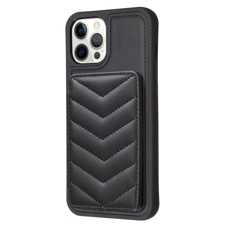 For iPhone 12 Pro Max BF26 Wave Pattern Card Bag Holder Phone Case(Black)