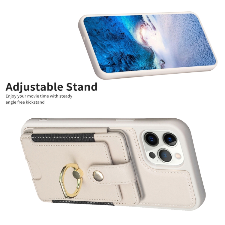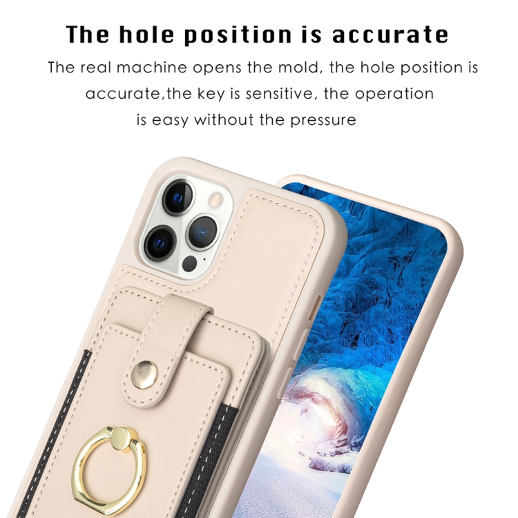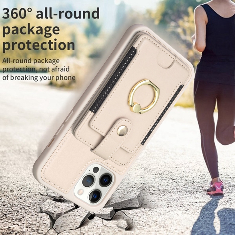 Funda para iPhone 12 Pro Max Bf27 Anillo de Metal Tarjeta Bolsa Titular Caja del Teléfono (Beige)