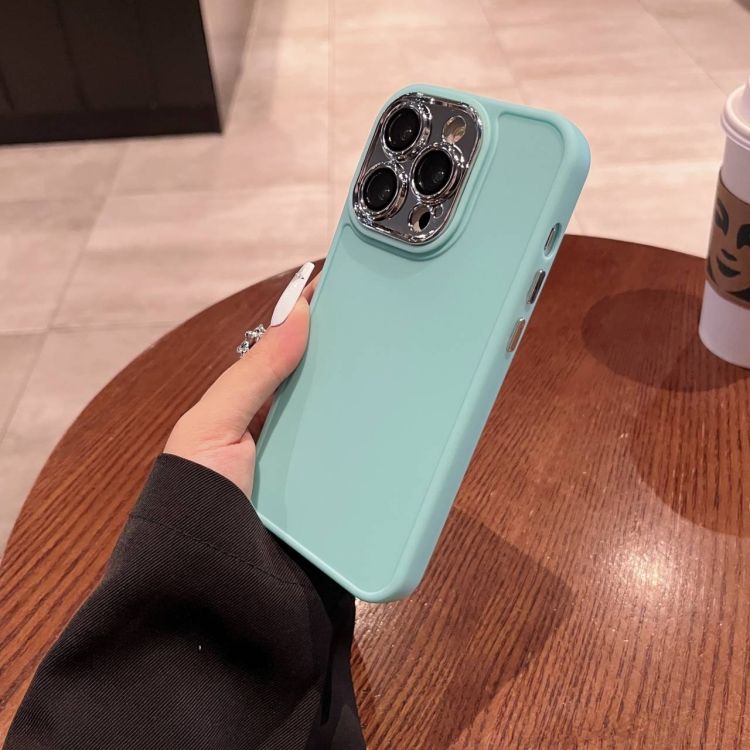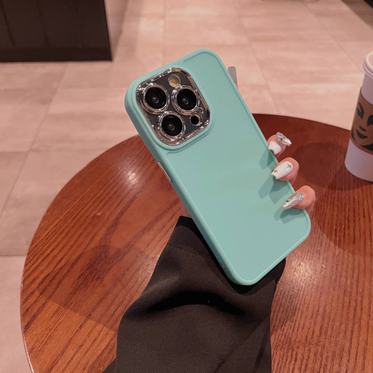 Caja de teléfono para iPhone 12 Pro Max con marco de Lente galvanizada y Película de Lente (Verde Menta)