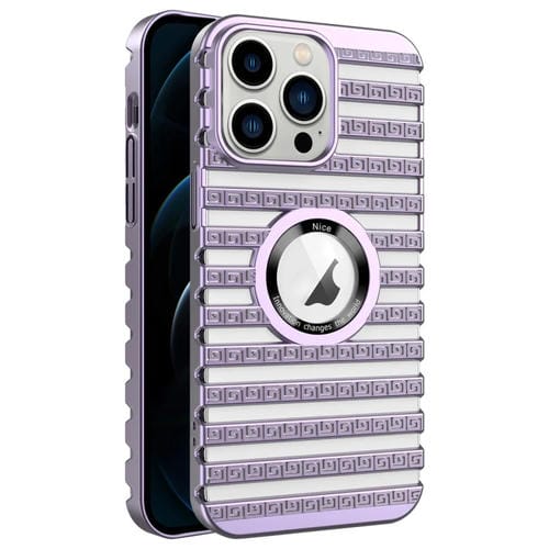 For iPhone 12 Pro Max Electroplated Hollow Phone Case with Cooling Ladder (Purple)