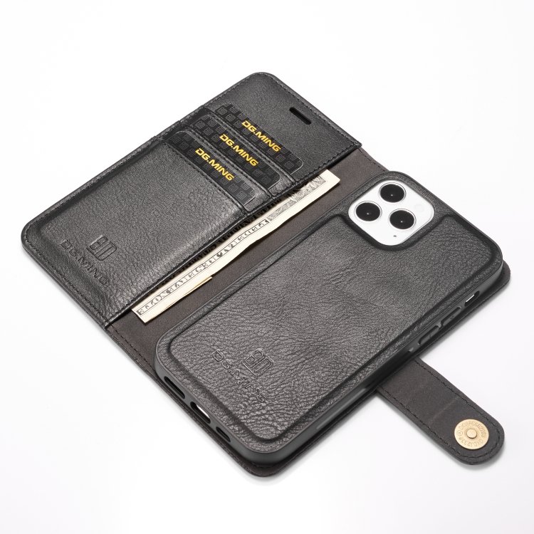 Funda para iPhone 12 Pro Max Dg.Ming Crazy Horse Texture Cuero Magnética Desmontable (Negro)