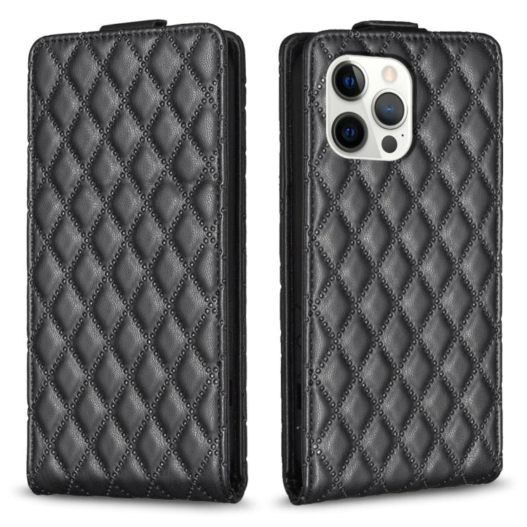 Funda para iPhone 12 Pro Max Diamond Lattice de Cuero con Tapa Vertical (Negro)