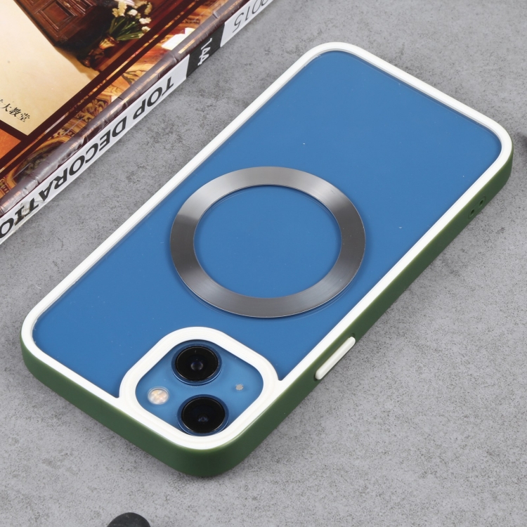 For iPhone 12 Pro Max Two-color Shield MagSafe TPU+PC Phone Case (Dark Green)