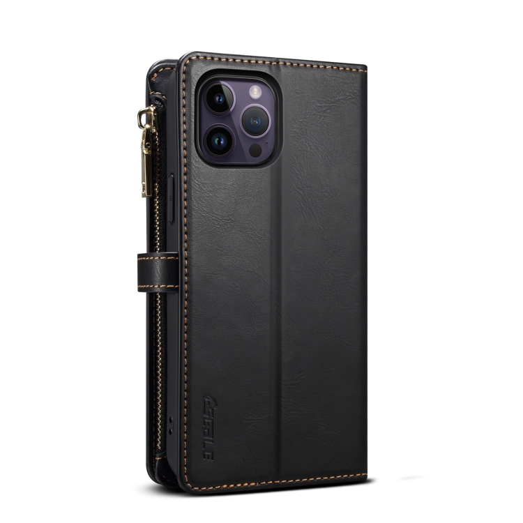 Funda para iPhone 12 Pro Max Eseble Star Series Lanyard Zipper Wallet Rfid Cuero (Negro)