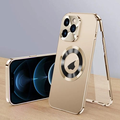 Estuche magnético para iPhone 12 Pro Max de vidrio templado HD (Dorado)