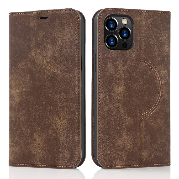 Estuche para Teléfono iPhone 12 Pro Max Cuero con Carga Inalámbrica Magsafe (Café)