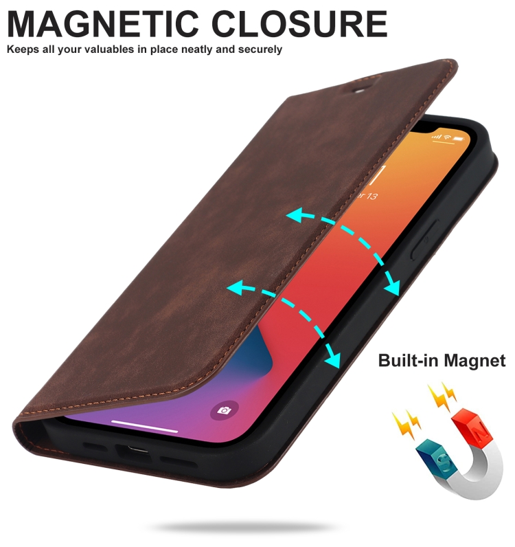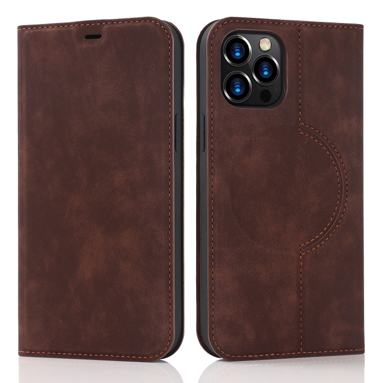 Estuche para teléfono iPhone 12 Pro Max cuero con carga inalámbrica Magsafe (Marrón)