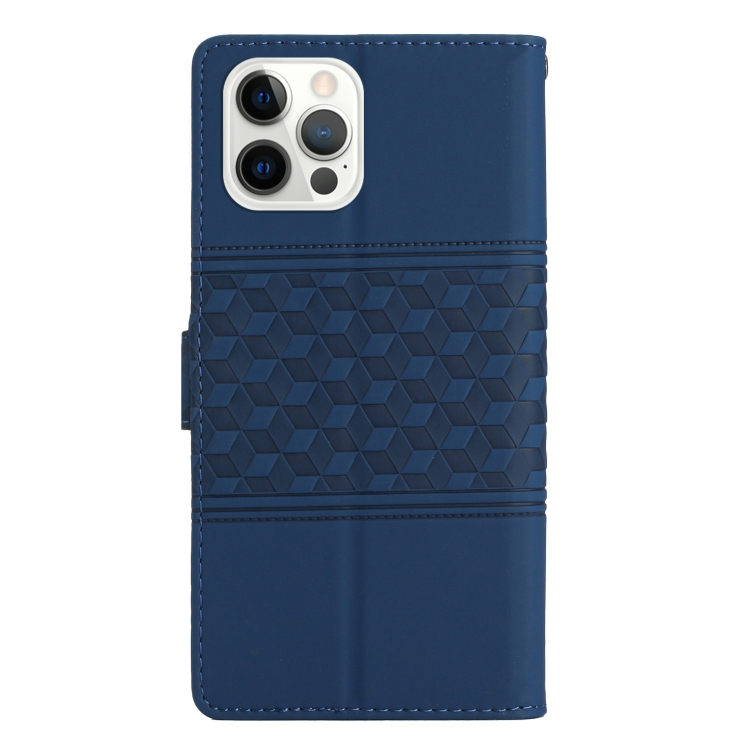 Estuche para Teléfono iPhone 12 Pro Max Cuero Tacto Piel En Relieve con Cordón (Azul Oscuro)