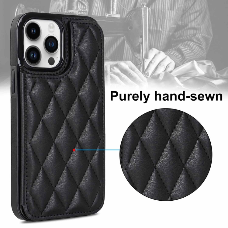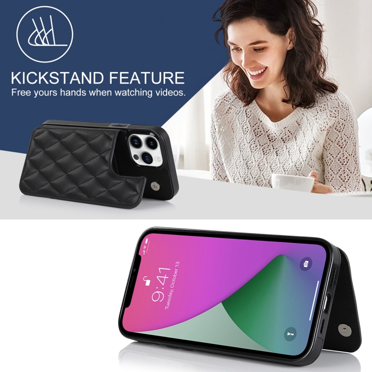 Estuche para teléfono iPhone 12 Pro Max Cuero de PU Rómbico con Doble Hebilla (Negro)