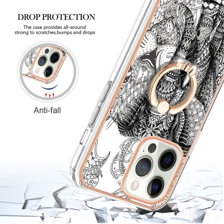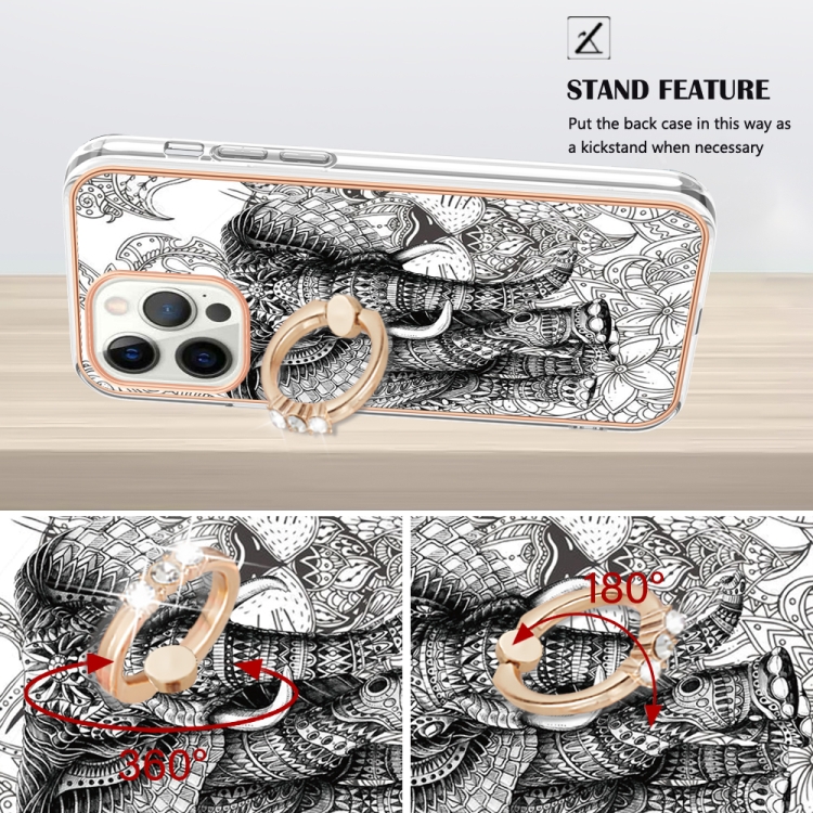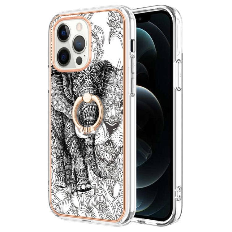 Caja de teléfono para iPhone 12 Pro Max Galvanoplastia Imd doble cara con soporte para anillo (Totem Elephant)