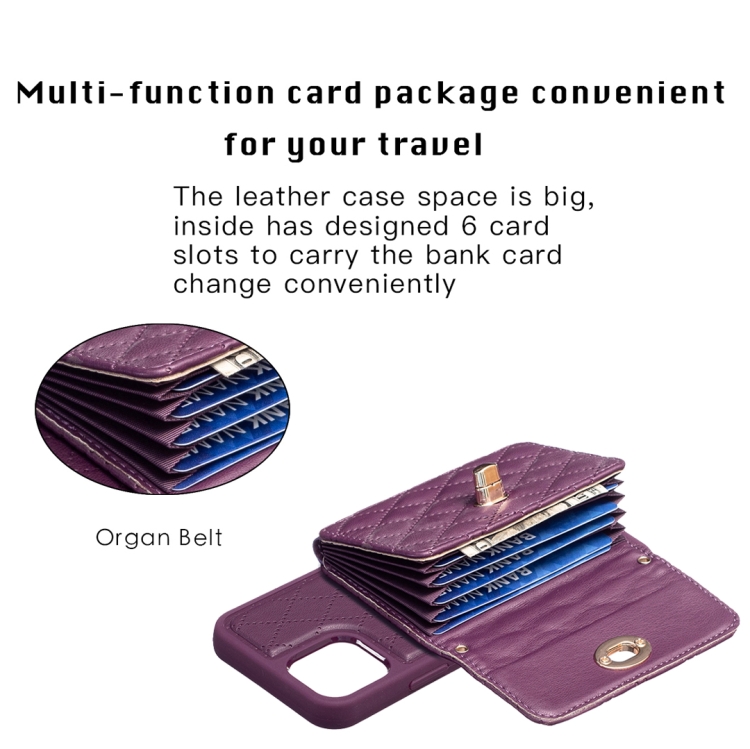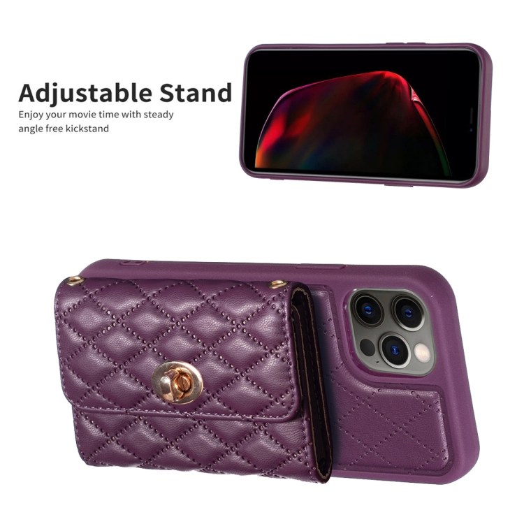 Funda para iPhone 12 Pro Max Cartera Horizontal Hebilla de Metal Rombico Cuero (Púrpura Oscuro)