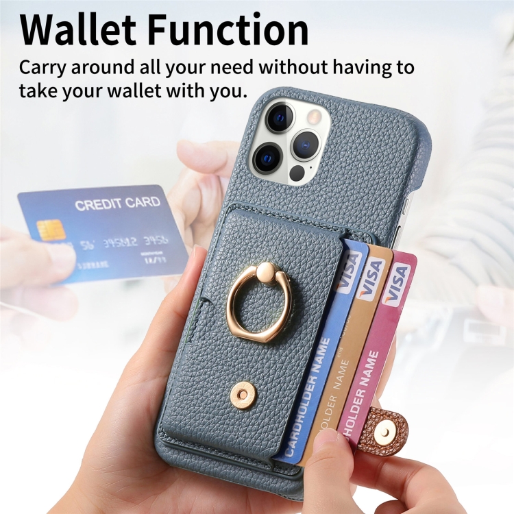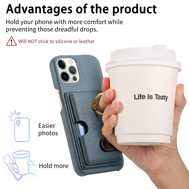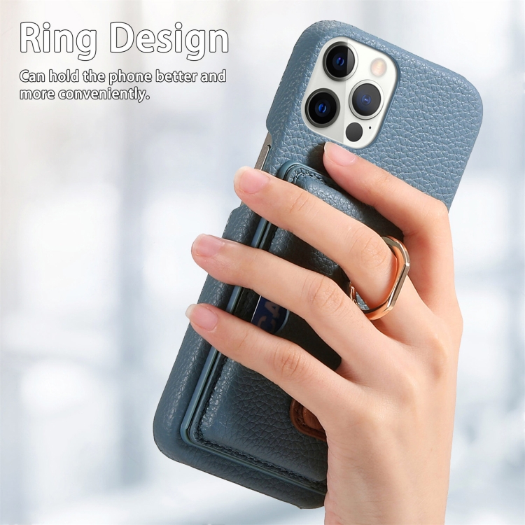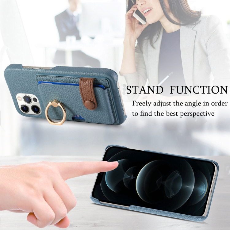 Funda para Teléfono iPhone 12 Pro Max Litchi Leather Oil Edge Ring Card Back (Azul Claro)