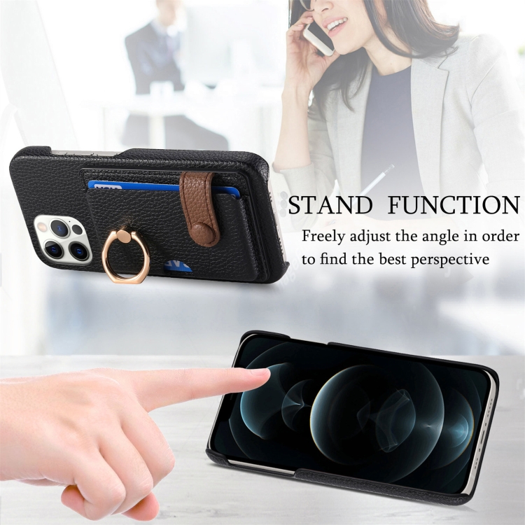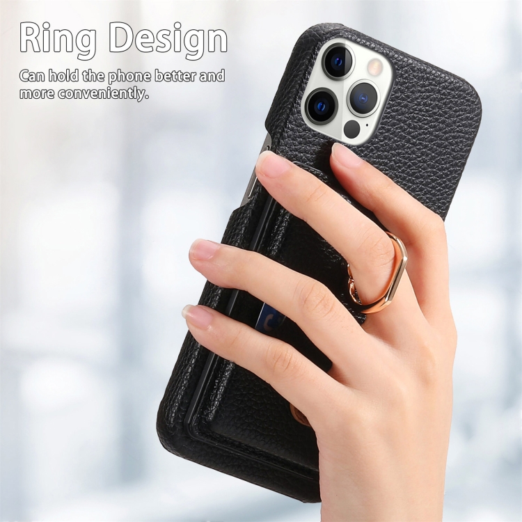 Funda para Teléfono iPhone 12 Pro Max Litchi Leather Oil Edge Ring Card Back (Negro)