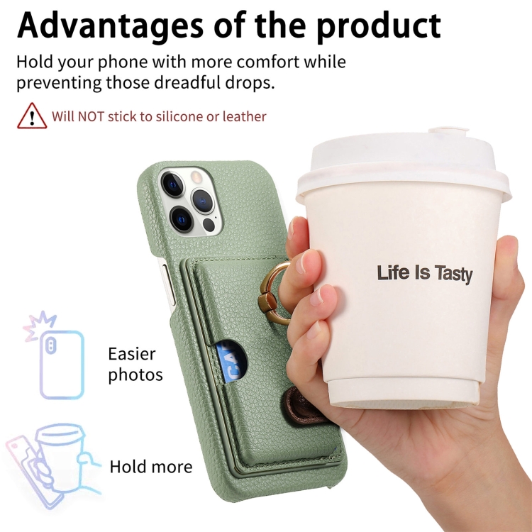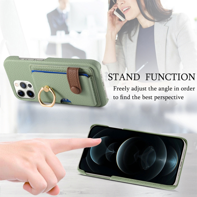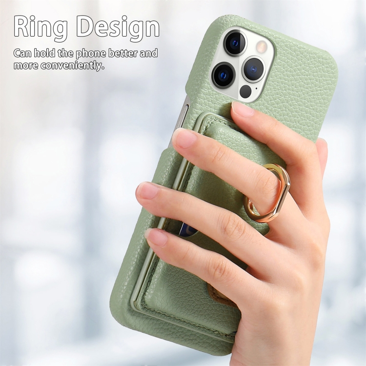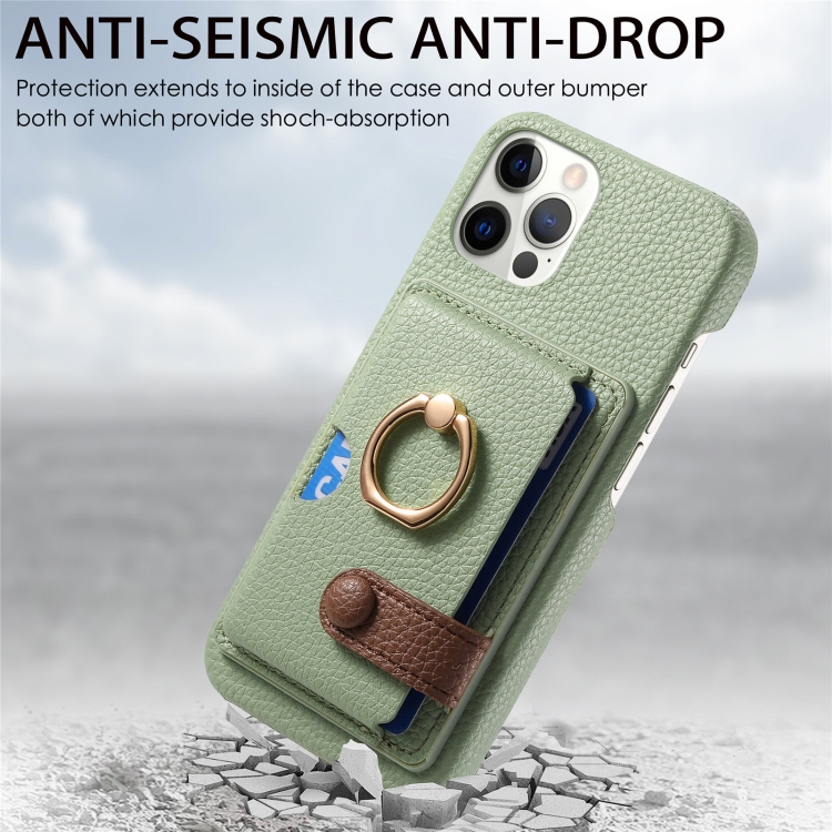 Funda para Teléfono iPhone 12 Pro Max Litchi Leather Oil Edge Ring Card Back (Verde Té)