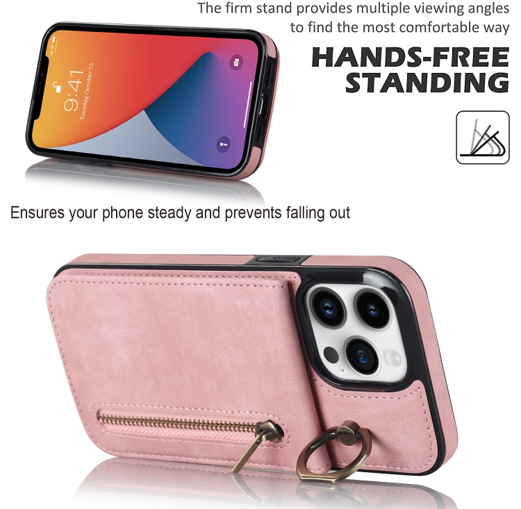 Funda para iPhone 12 Pro Max Retro Ring y Zipper con Ranura RFID (Rosa)