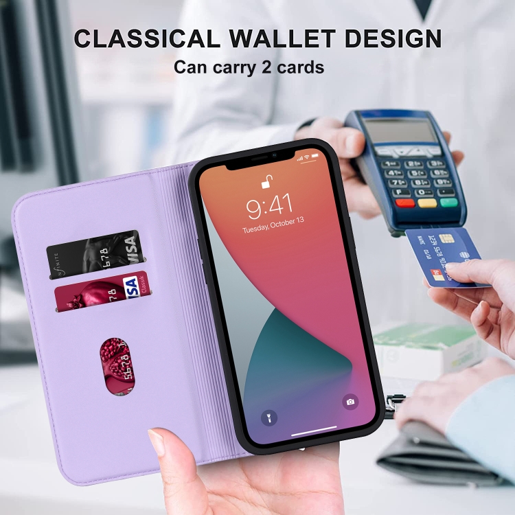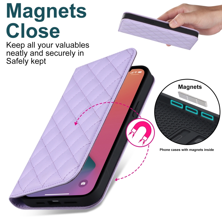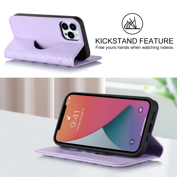 Funda para iPhone 12 Pro Max Rhombic Magsafe Rfid Antirrobo de Cuero con Billetera (Púrpura)