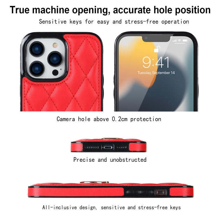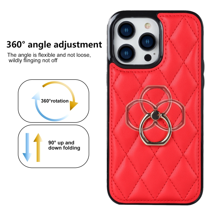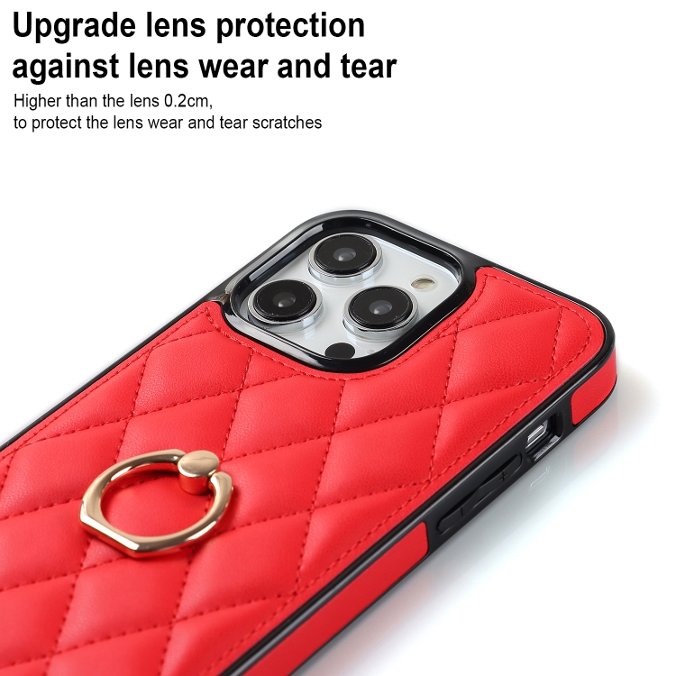 Funda para teléfono iPhone 12 Pro Max Rhombic PU Cuero con Soporte para Anillo (Rojo)