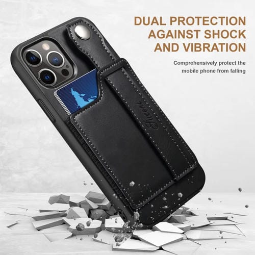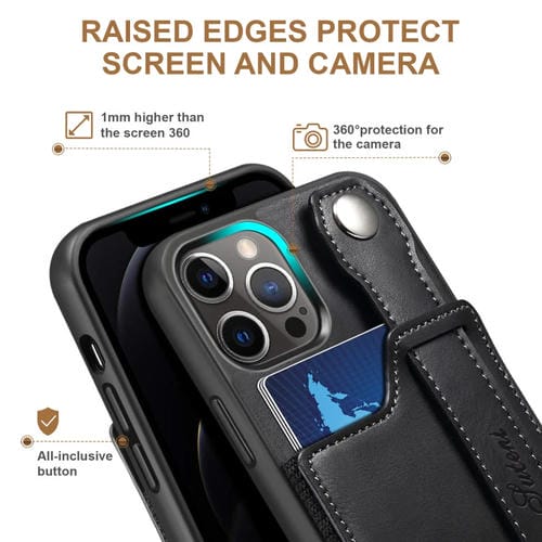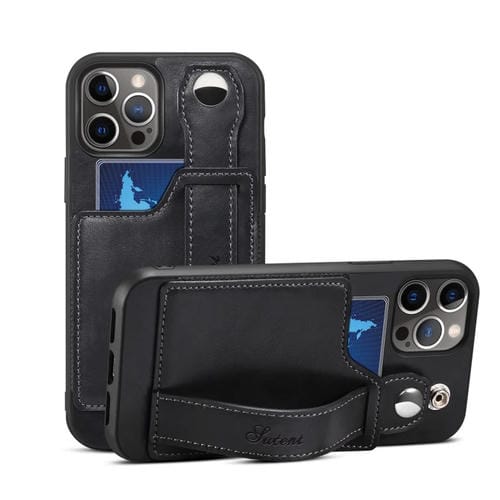 For iPhone 12 Pro Max Suteni 215 Wrist Strap PU Phone Case (Black)