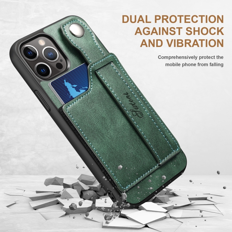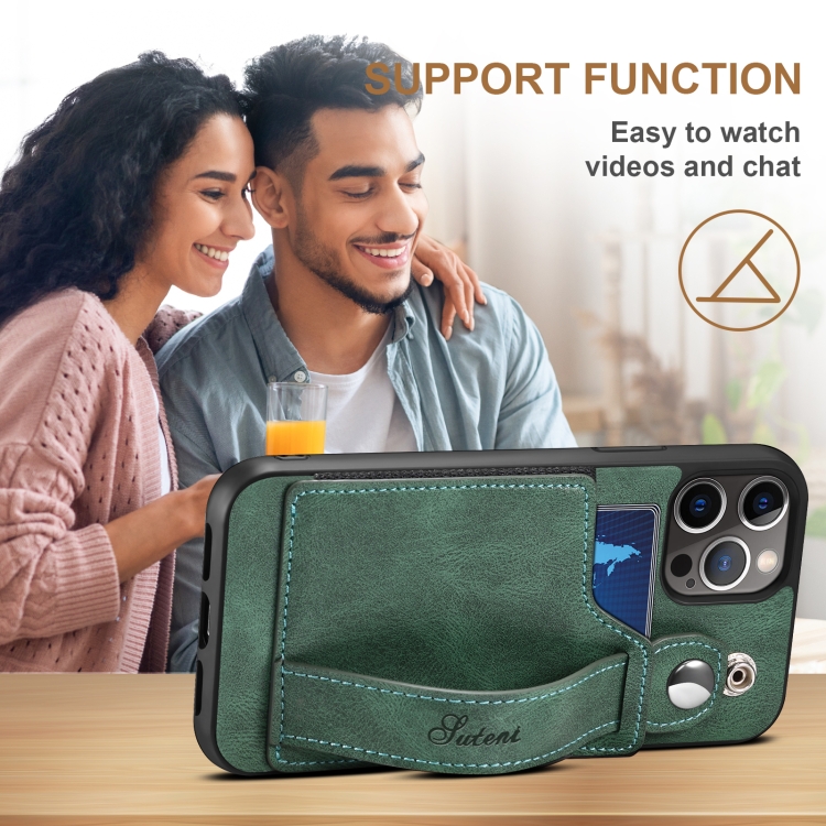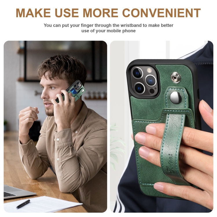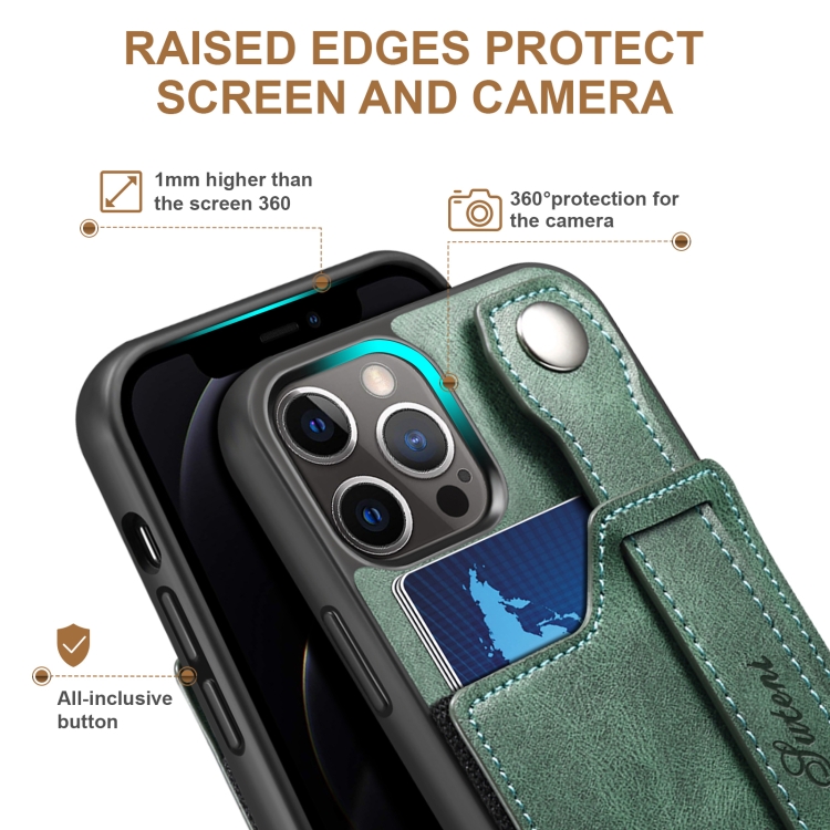 For iPhone 12 Pro Max Suteni 215 Wrist Strap PU Phone Case (Green)