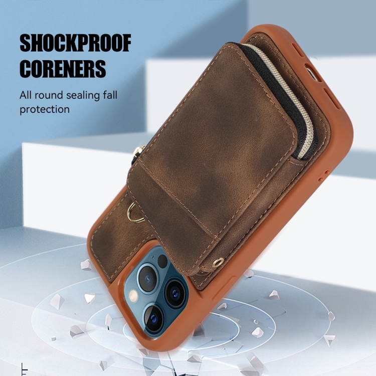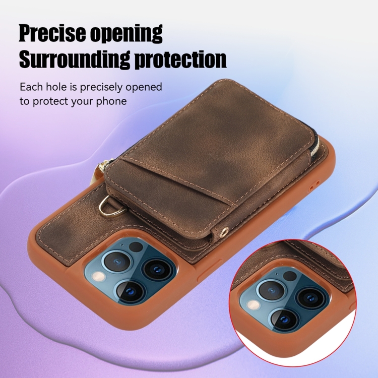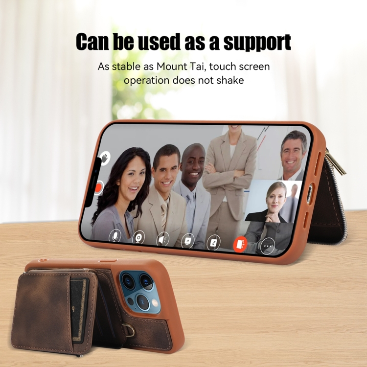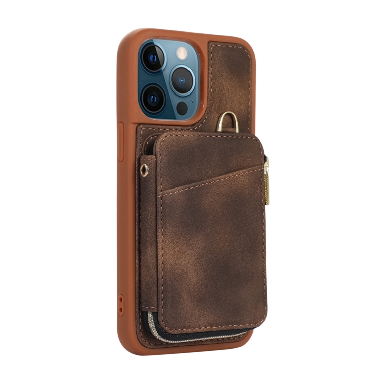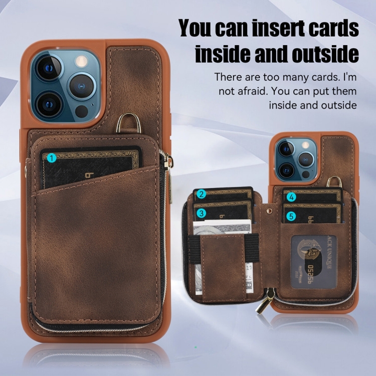 Funda para Teléfono iPhone 12 Pro Max Zipper Card Bag Contraportada (Marrón)