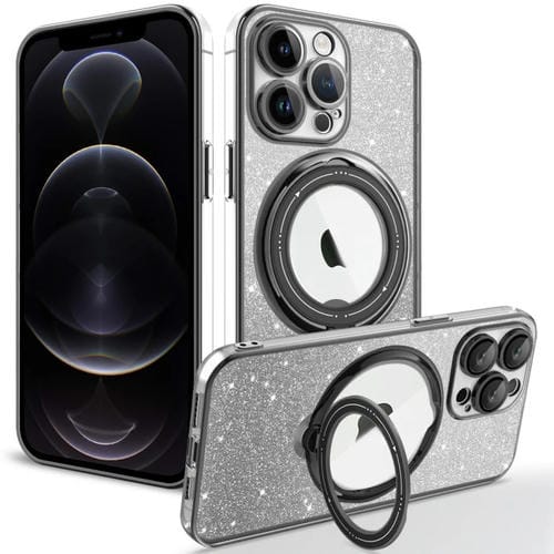 Funda para Teléfono iPhone 12 Pro Rotación Magsafe Holder Gradient Glitter TPU (Negro)