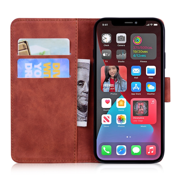 Funda Flip de Cuero para iPhone 12 Pro Skin Feel Pure Color (Marrón)