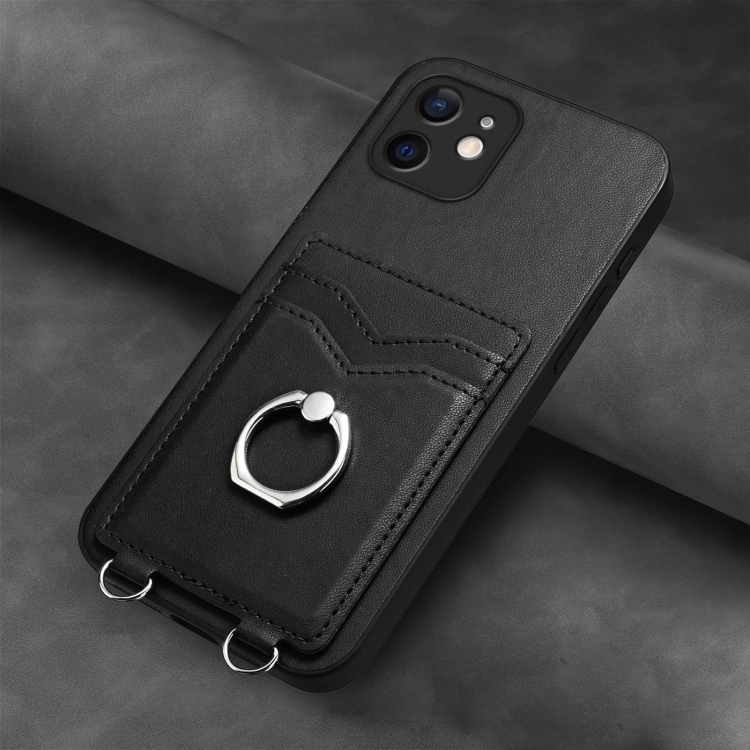For iPhone 12 R20 Phone Case with Ring Card Holder (Black)