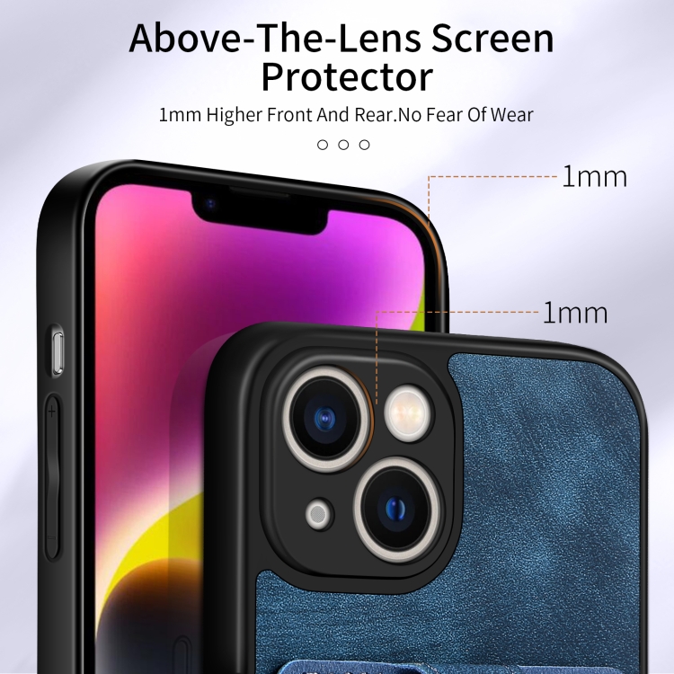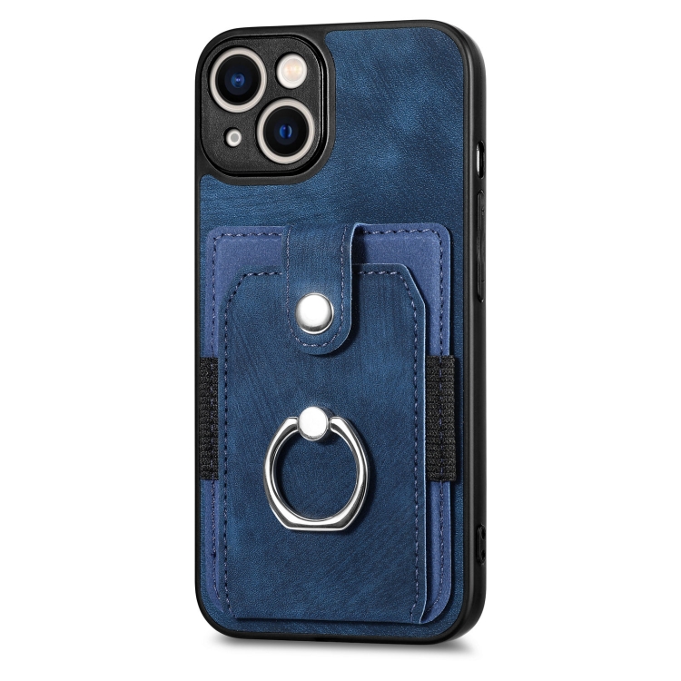 Funda para iPhone 12 Retro Skin-Feel Ring Card Wallet Phone Case (Azul)