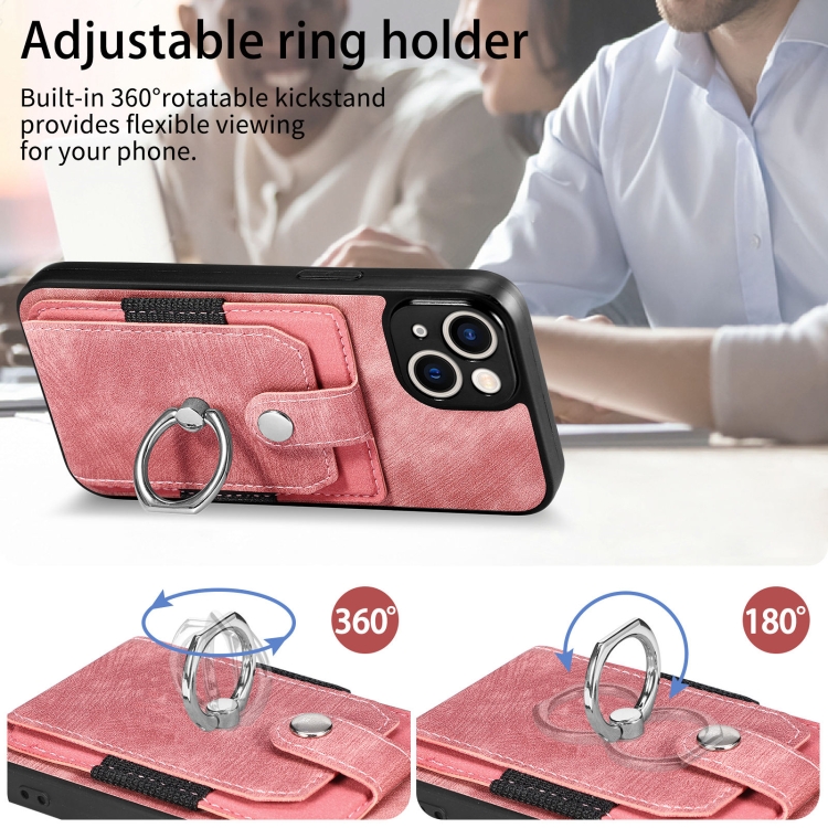Funda para iPhone 12 Retro Skin-Feel Ring Card Wallet Phone Case (Rosa)