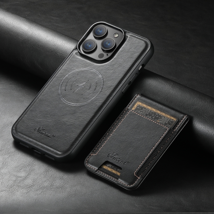 Funda para Teléfono Suteni H17 Oil Eax Leather Magsafe para iPhone 12 con Billetera Desmontable (Negro)