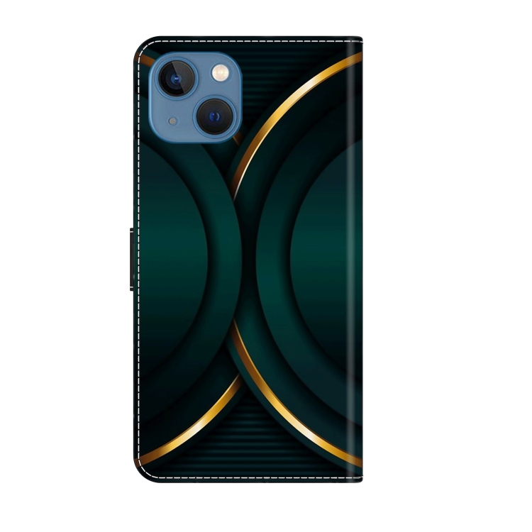Funda Protectora de Cuero para iPhone 13/14 Crystal 3D a Prueba de Golpes (Contorno Dorado)