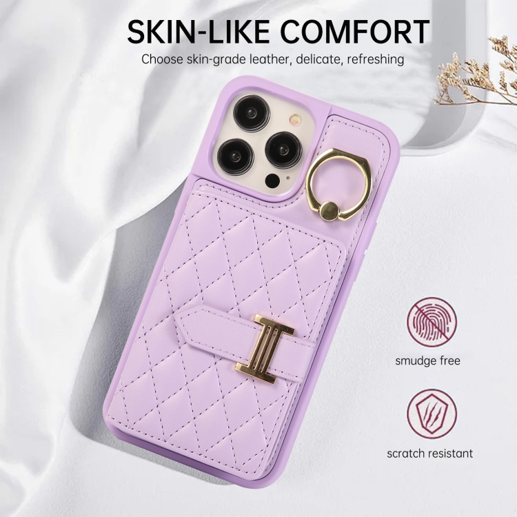Funda para Teléfono iPhone 13 Bolsa de Tarjeta Horizontal Soporte de Anillo Cordón Doble (Púrpura)