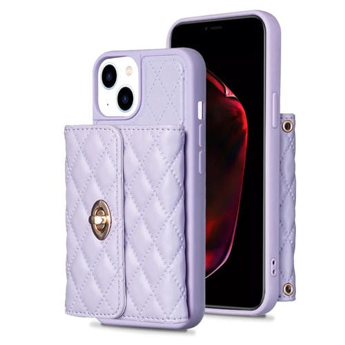 Caja de Teléfono para iPhone 13 Cuero Rombal con Hebilla de Metal Horizontal (Púrpura)