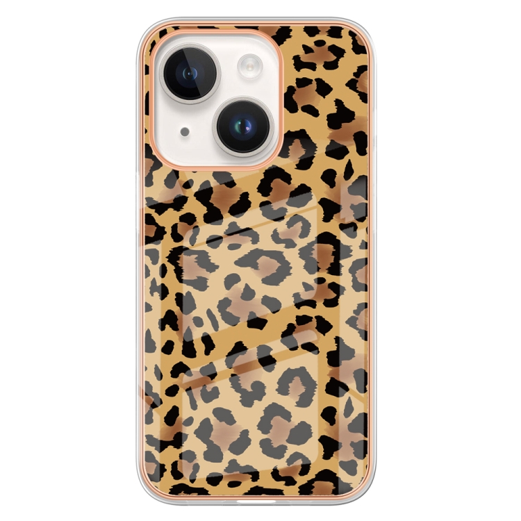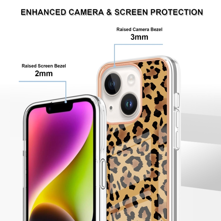 For iPhone 13 Electroplated Marble Double-sided IMD Phone Case (Leopard Print)