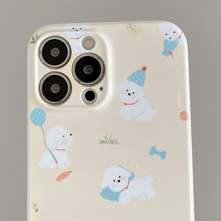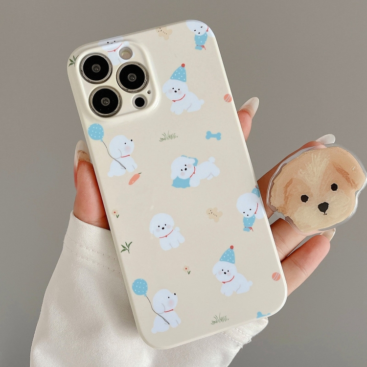 Caja de teléfono PC para iPhone 13 con patrón pintado perro amarillo leche