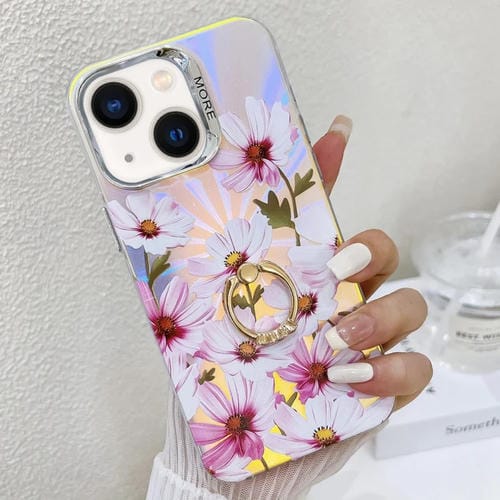 For iPhone 13 Electroplating Laser Flower Ring Holder TPU Phone Case (Cosmos Flower AH7)