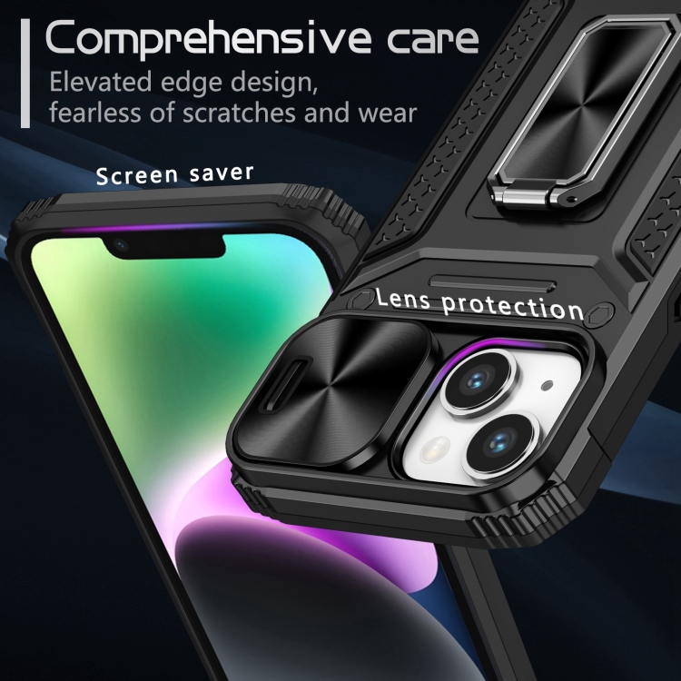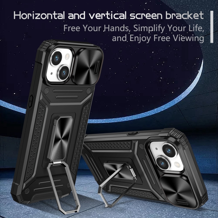 For iPhone 13 Camshield Robot TPU Hybrid PC Phone Case(Black)