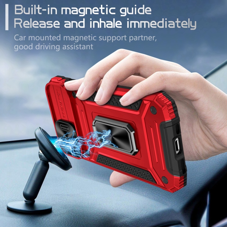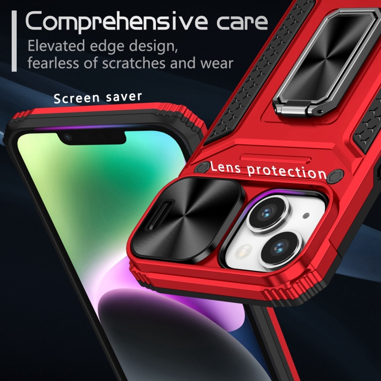 For iPhone 13 Camshield Robot TPU Hybrid PC Phone Case(Red)