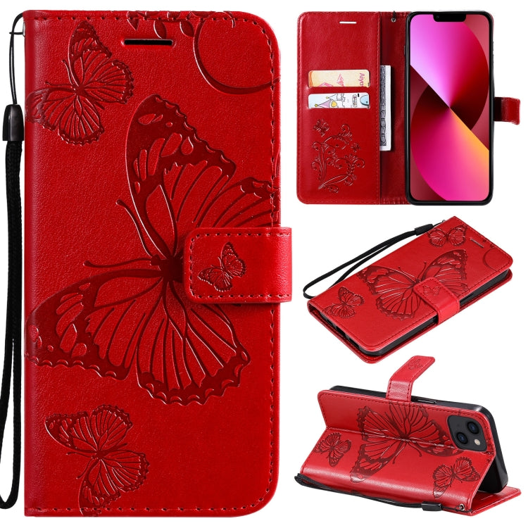 Estuche de Cuero para iPhone 13 con Tapa Horizontal, Patrón Mariposa 3D, Soporte, Ranura para Tarjeta, Billetera y Cordón (Rojo)
