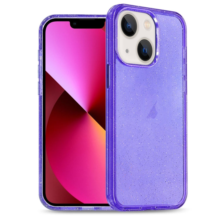 Estuche híbrido para iPhone 13 con PC y TPU Glitter Powder (Púrpura)
