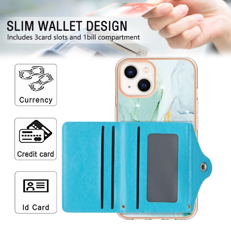 Estuche para Teléfono iPhone 13 con Ranura para Tarjeta Imd con Patrón de Mármol (Verde)