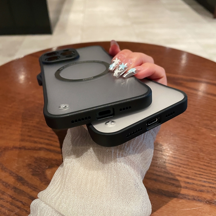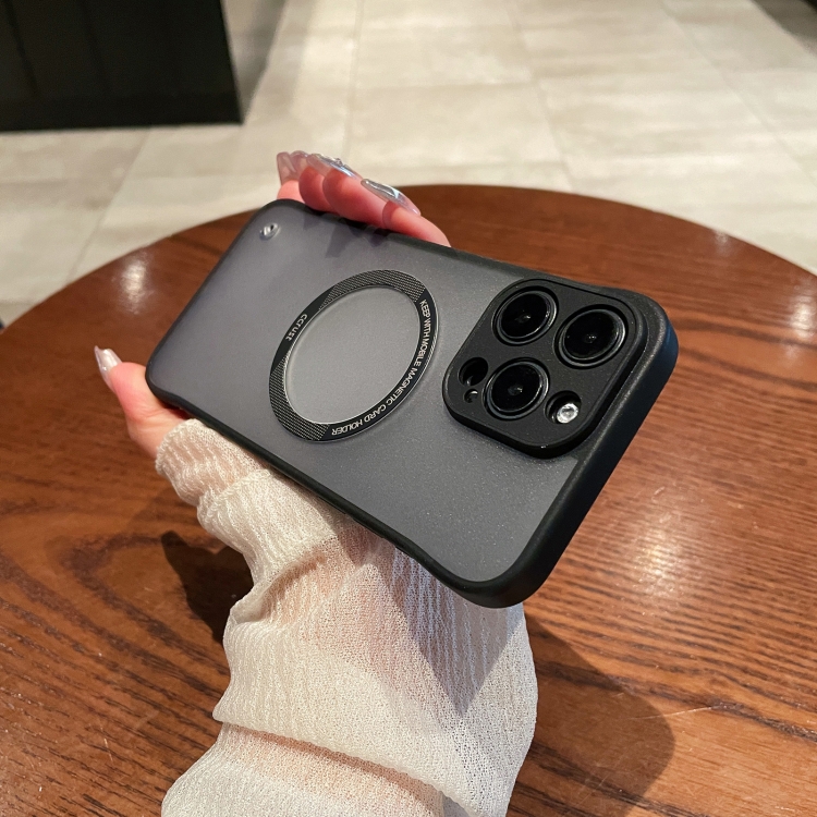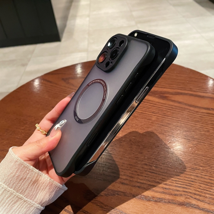For iPhone 13 Case Borderless Magsafe Magnetic Frosted Clear PC Phone Case (Black)