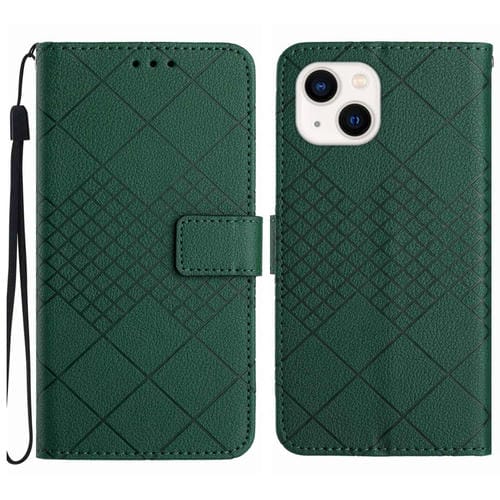 Funda para iPhone 13 Cuero Textura de Rejilla Rómbica (Verde)