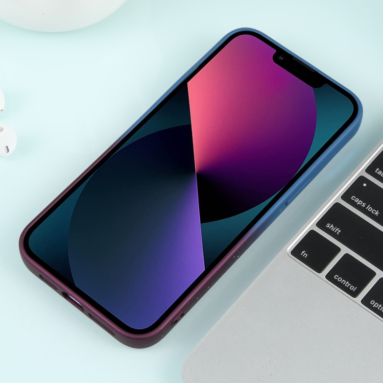 Funda de Teléfono iPhone 13 Silicona Estrellada Degradada con Película de Lente (Azul Rojo)