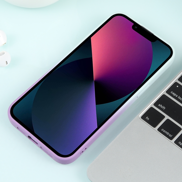 Funda de teléfono iPhone 13 Silicona Estrellada Degradada con Película de Lente (Blanco Púrpura)