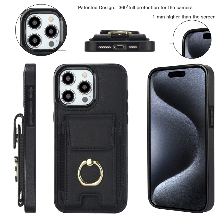 Funda elástica para teléfono iPhone 13 con soporte para anillo y bolsa para tarjetas (Negro)