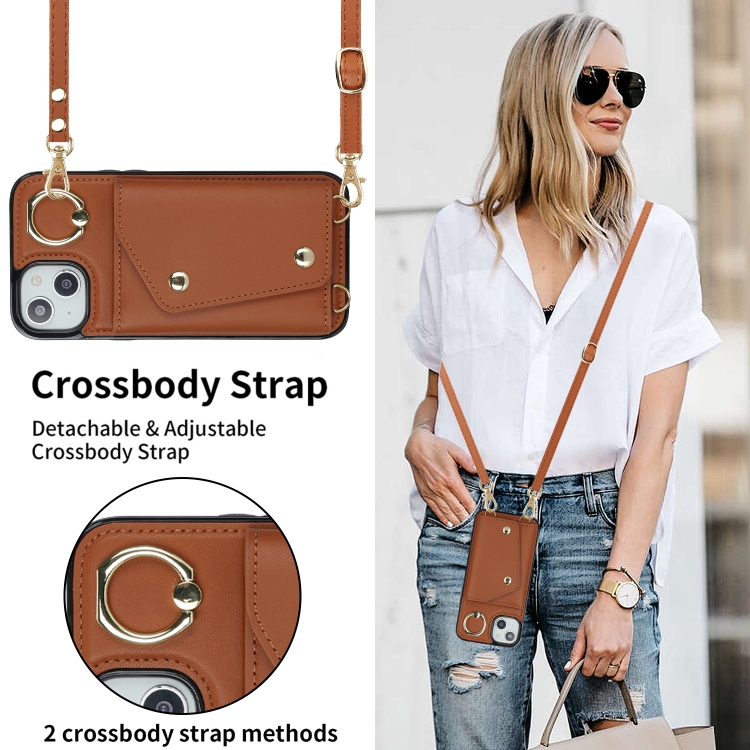 Funda para Teléfono iPhone 13 con Cremallera y Doble Cordón (Marrón)