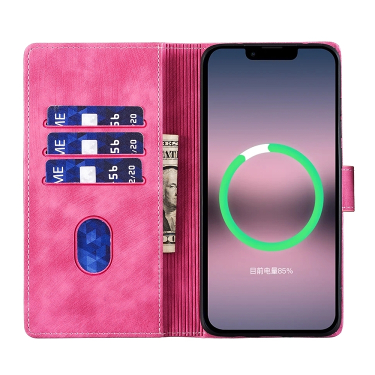 Funda para Teléfono iPhone 13 Cuero Relieve Gato y Corazón (Rosa)